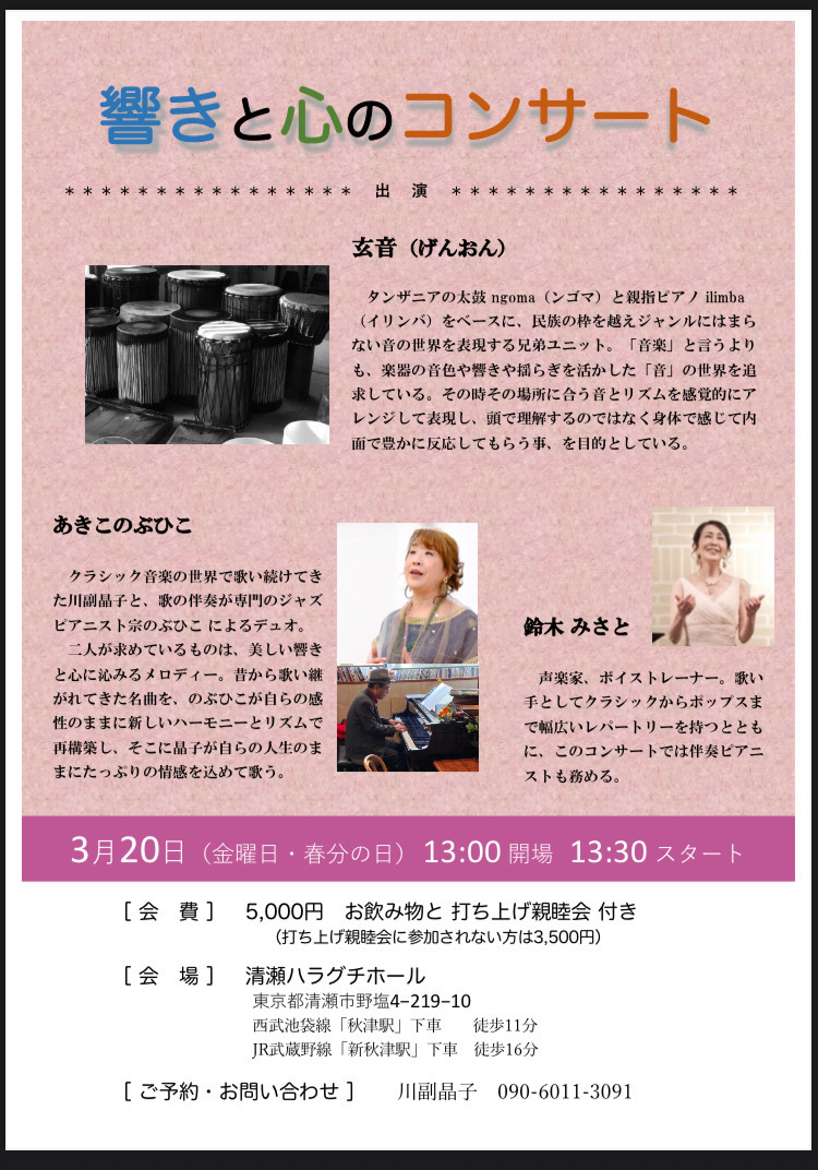 トップ 玄音について サウンド ブログ コンタクト タンザニアの太鼓やイリンバ、ヒーリング楽器などをベースに民族の枠を意図しない”音”の世界を表現するユニット”玄音” 楽器の音の響きや倍音感を大切にし、音を耳で聞くものとして捉えるのではなく全身•身体で反応してもらう為の演奏を目的としてる 身体の働きをリズムや波長として整える為に 普段使わない感覚を刺激して感性を豊かにする為に いのち活性化の為に