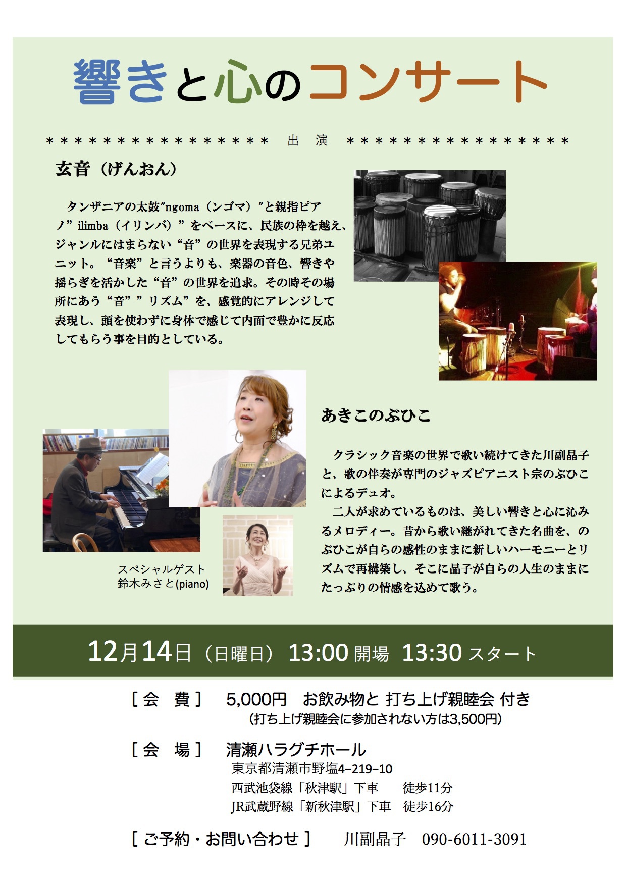 トップ 玄音について サウンド ブログ コンタクト タンザニアの太鼓やイリンバ、ヒーリング楽器などをベースに民族の枠を意図しない”音”の世界を表現するユニット”玄音” 楽器の音の響きや倍音感を大切にし、音を耳で聞くものとして捉えるのではなく全身•身体で反応してもらう為の演奏を目的としてる 身体の働きをリズムや波長として整える為に 普段使わない感覚を刺激して感性を豊かにする為に いのち活性化の為に
